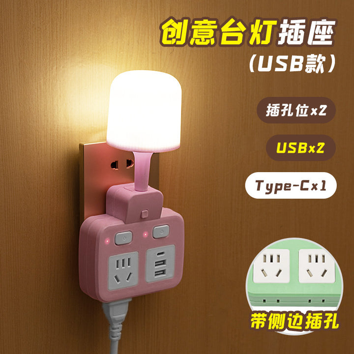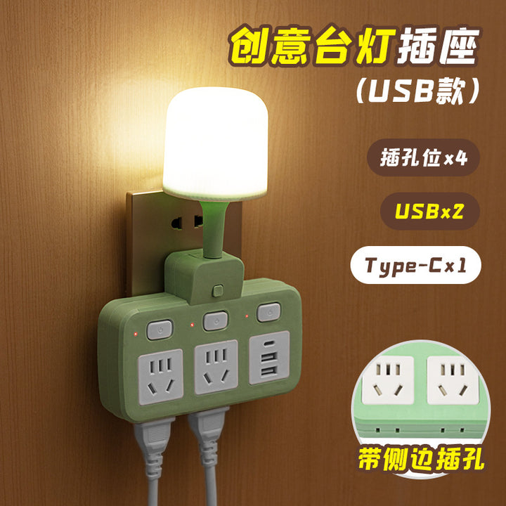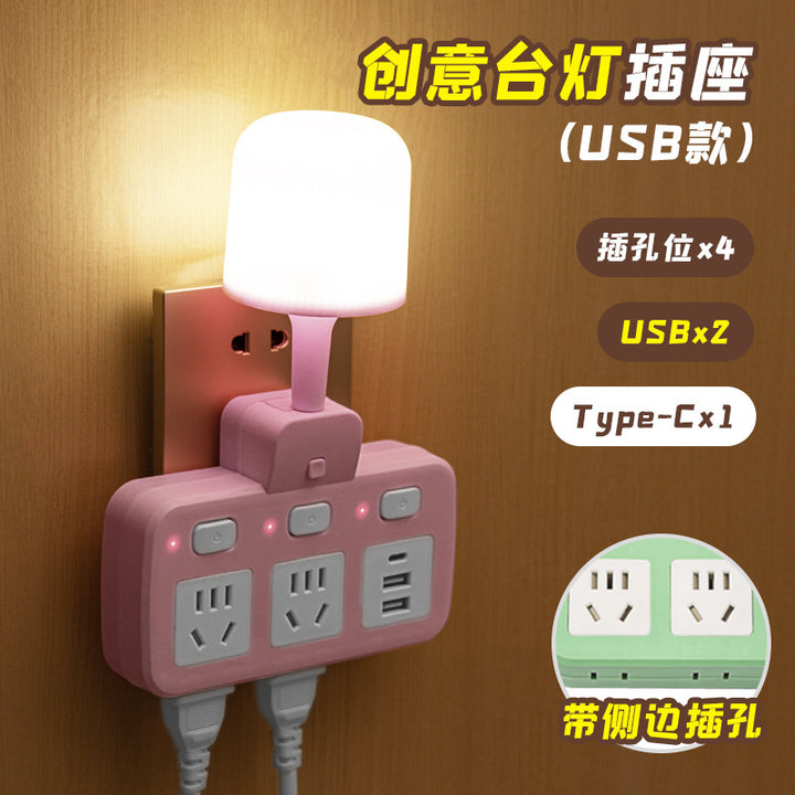 Creative learning desk lamp conversion usb socket, multi-function eye protection night light row plug one turn multi-wireless power strip wholesale