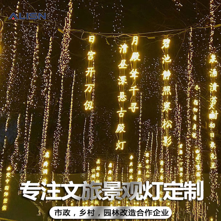 Creative luminous characters poetry banners Datang never sleeps city scenic park street tree lighting hanging tree landscape light string