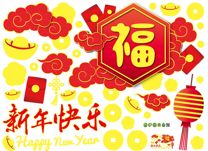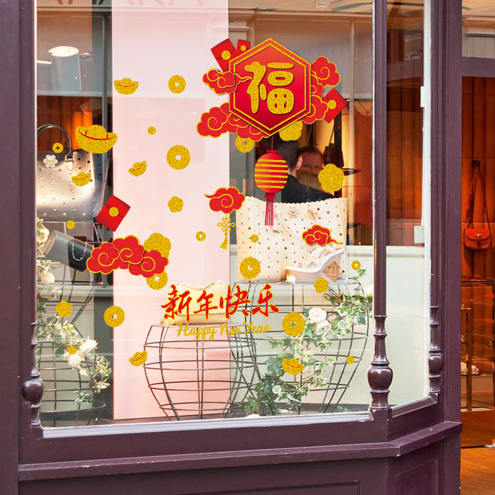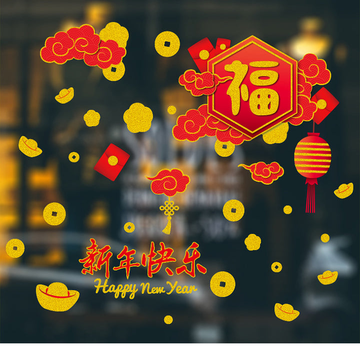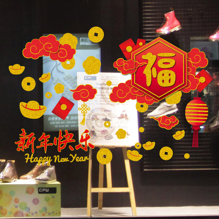 Creative new gold glitter New Year sticker shopping mall window glass self-adhesive decorative sticker SK-ZG-6009ds