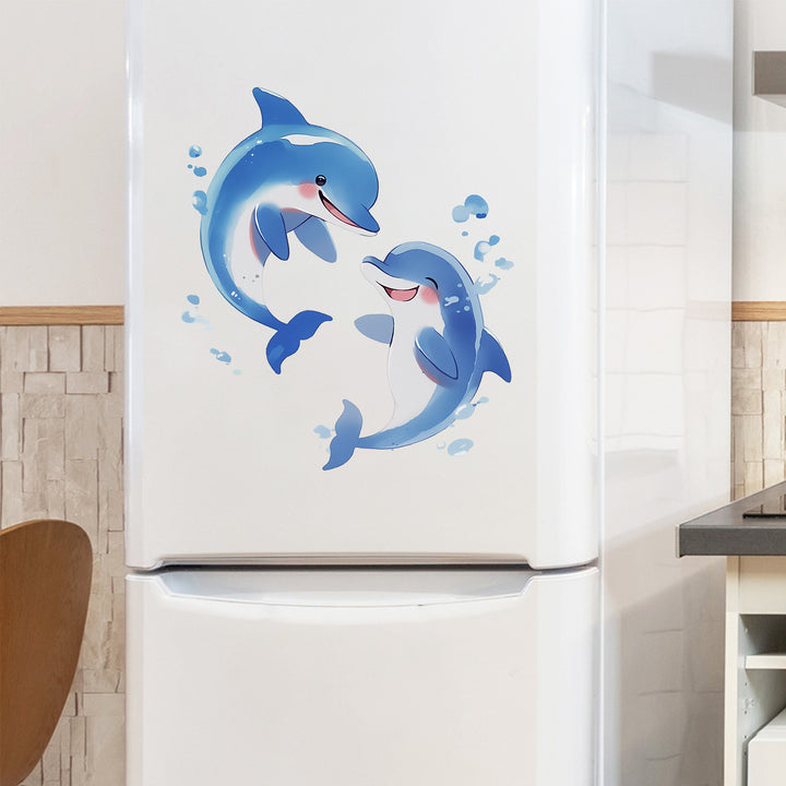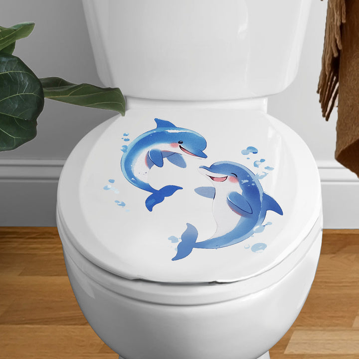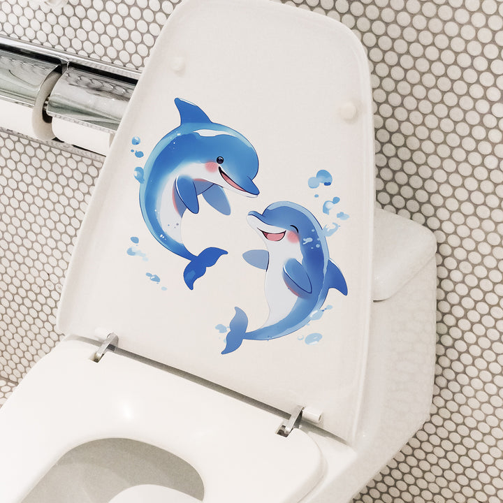 Creative two cute and smart dolphins toilet sticker animal wall sticker bathroom toilet vanity decorative sticker
