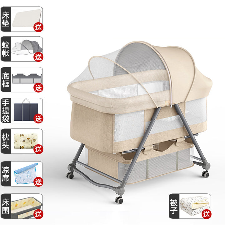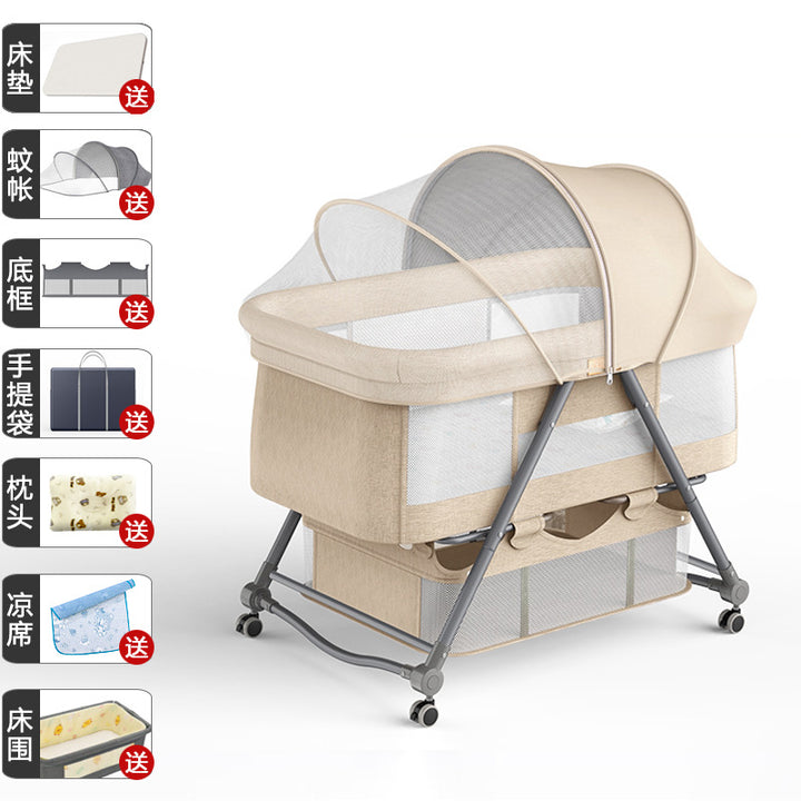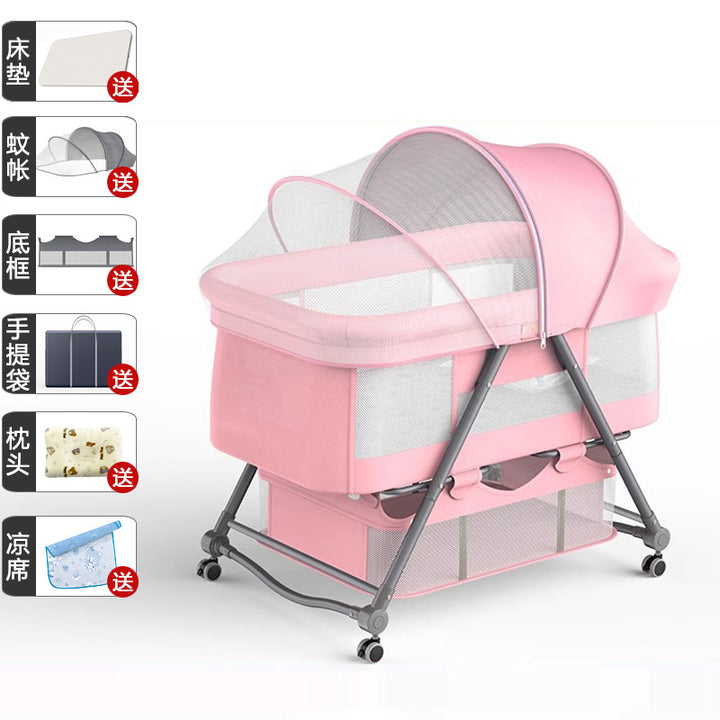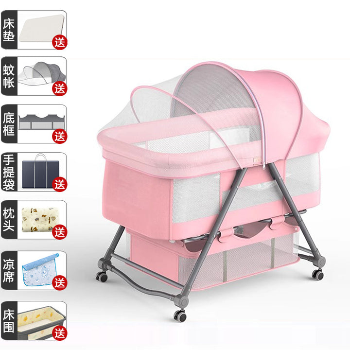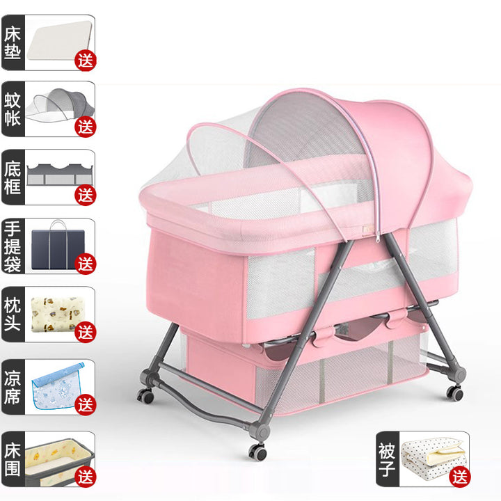 Crib portable foldable cradle bed with roller mobile baby bed bb sleeping newborn splicing bed
