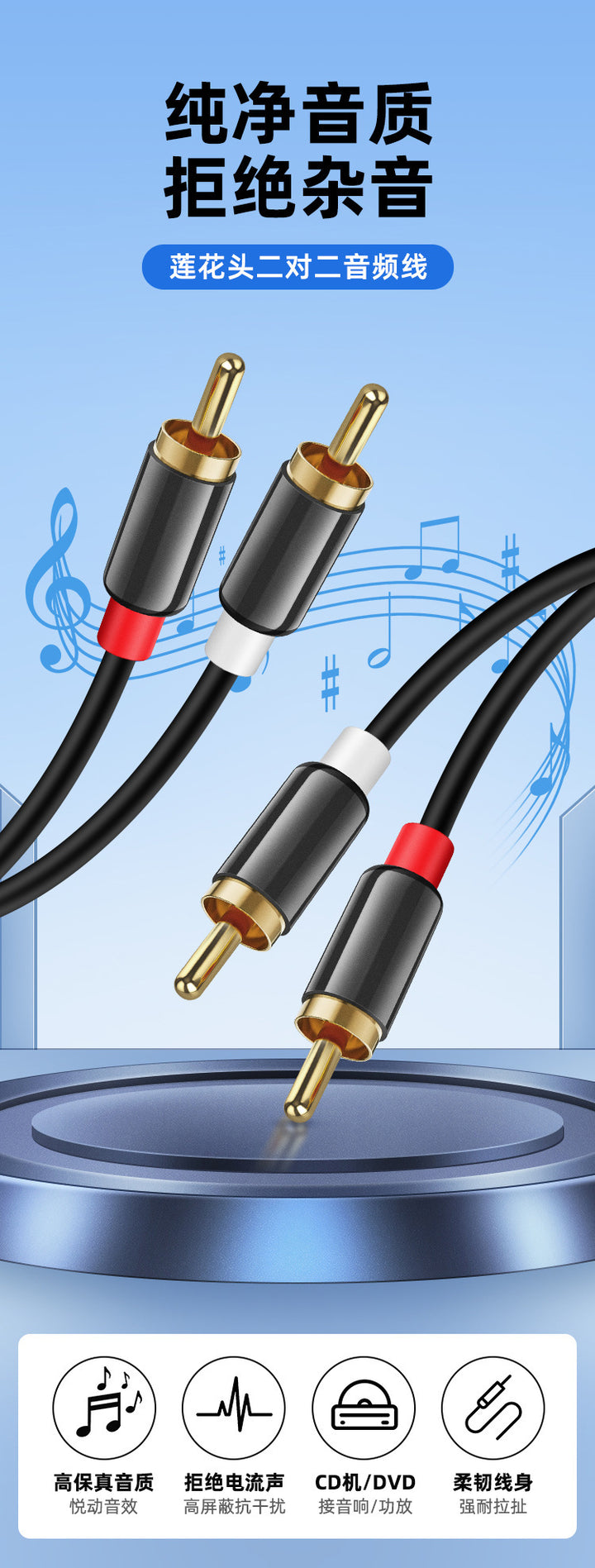 Cross-border 2RCA audio cable, double lotus red and white plug, left and right channel aluminum alloy TV audio power amplifier cable