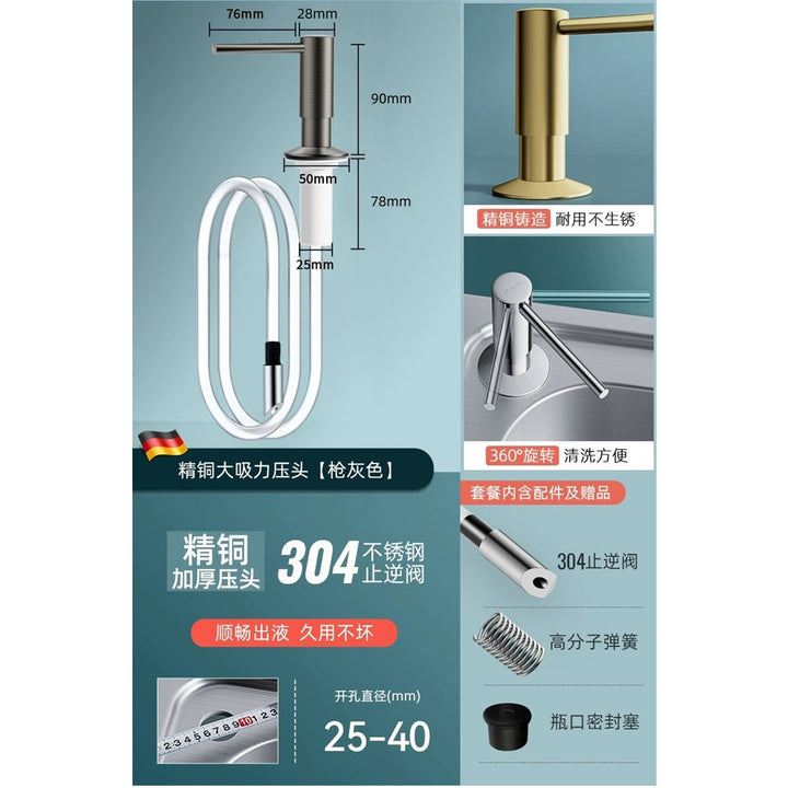 [SD10] Bright silver-304 stainless steel large suction soap dispenser + 1m metal check valve extension tube, [SD10] Black-304 stainless steel high suction soap dispenser + 1m metal check valve extension tube, [SD10] White-304 stainless steel high suction soap dispenser + 1m metal check valve extension tube, [SD10] Gun gray-304 stainless steel high suction soap dispenser + 1m metal check valve extension tube, [SD10] Brushed color - stainless steel high suction soap dispenser + 1m metal check valve extension tube |