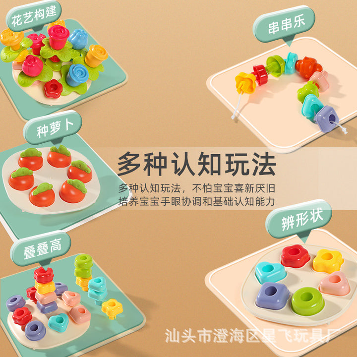 Cross-border baby fun flower art mushroom nail puzzle beaded collage training concentration logical thinking early education toy