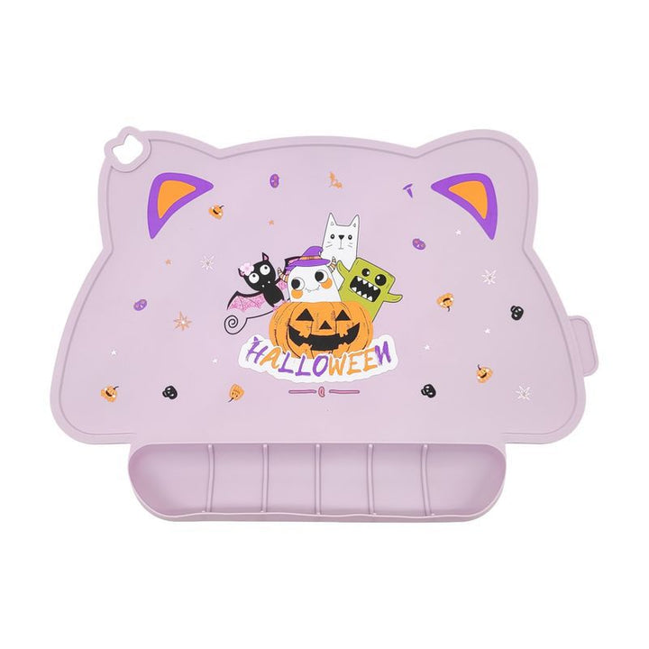 Cross-border baby placemat, thermal insulation mat, silicone foldable Halloween table mat, printed western food mat, eating mat with pocket