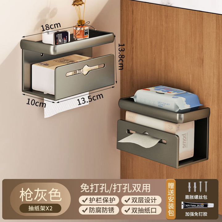 Cross-border bathroom tissue box roll paper holder double layer non-punching wall hanging mobile phone holder paper drawing holder kitchen tissue h...
