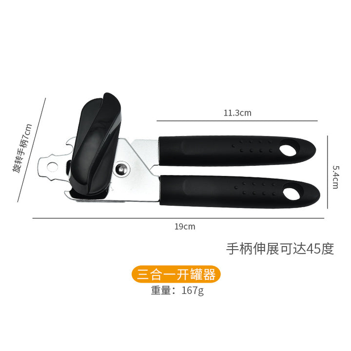 Cross-border can opener New stainless steel three-in-one multi-purpose can opener Manual bottle opener Household can opening tool