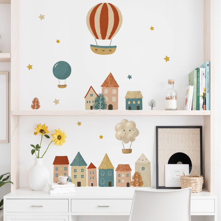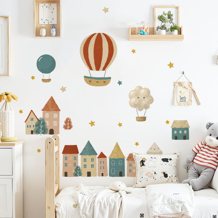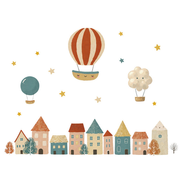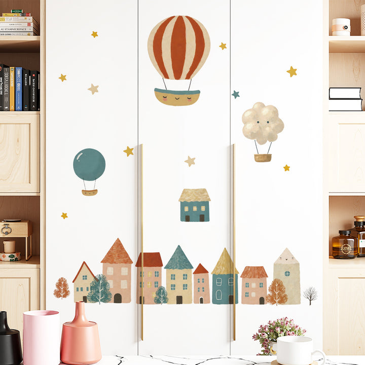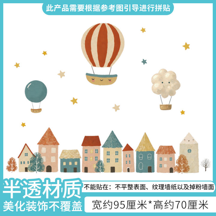 Cross-border cartoon house balloon background wall decoration sticker children's room clouds rainbow cute wall sticker 66064