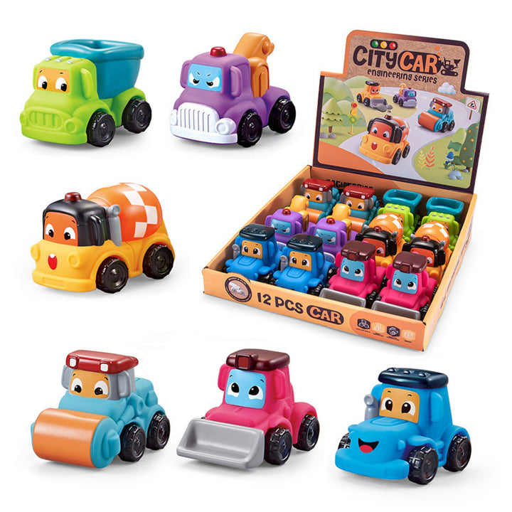 Cross-border children's cartoon construction car vinyl car boy playable washable boy toy car gift