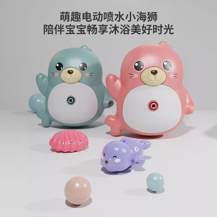 Cross-border children's electric water spray baby sea lion baby water play soothing cartoon bathroom play water bath toy