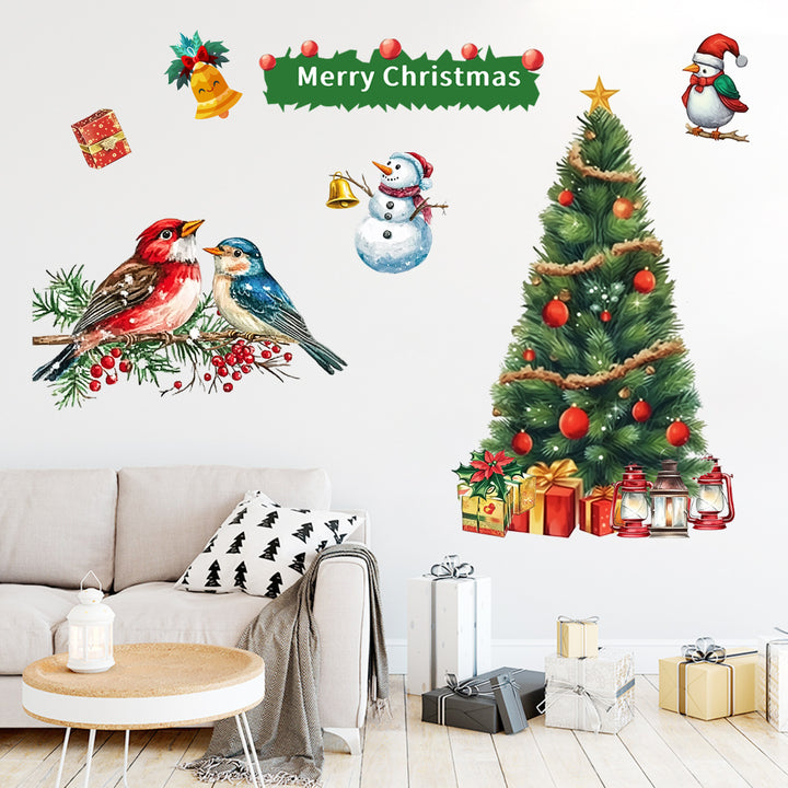 Cross-border Christmas element sticker Christmas tree bird snowman wall sticker decoration