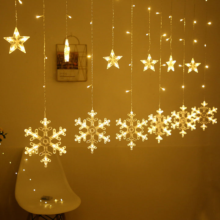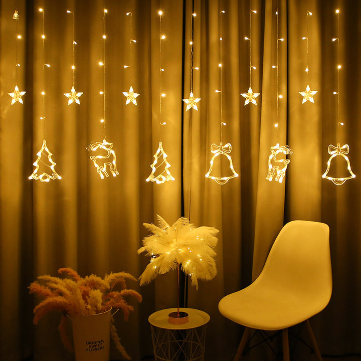 Cross-border Christmas LED curtain lights, lanterns, deer, snowflake bells, stars, ice bar lights, remote control room atmosphere lights