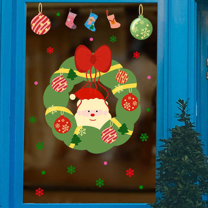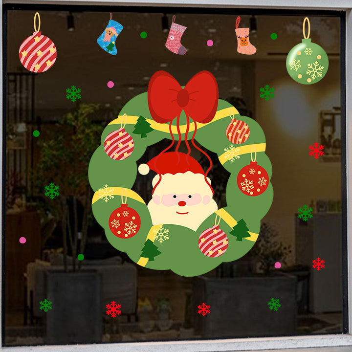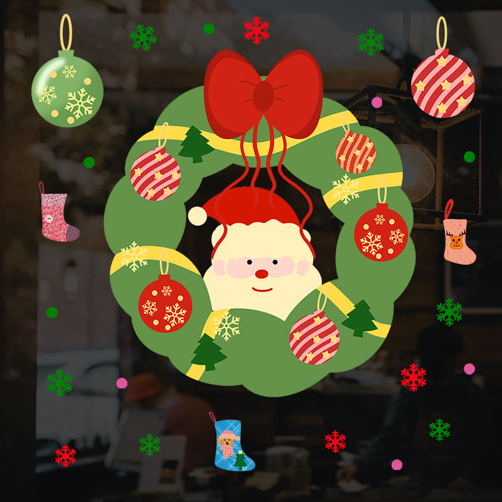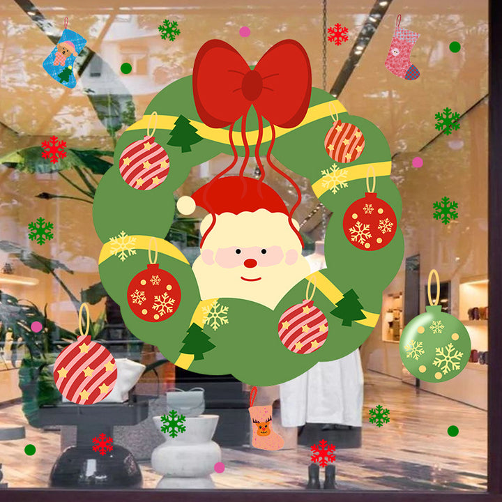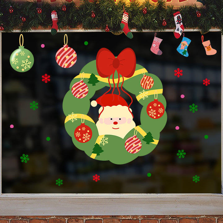 Cross-border Christmas snowflake sticker Christmas colored ball wreath window sticker New Year's ornament Electrostatic snowflake glass sticker