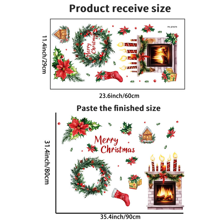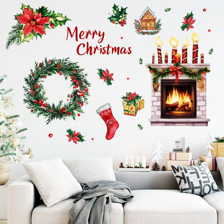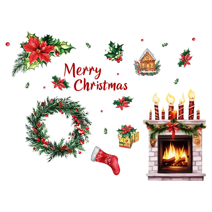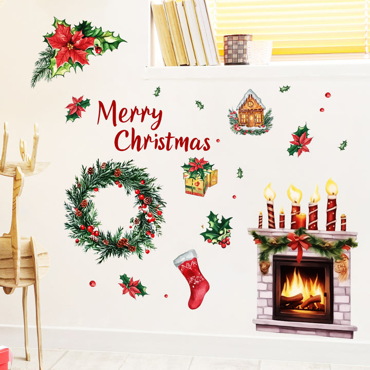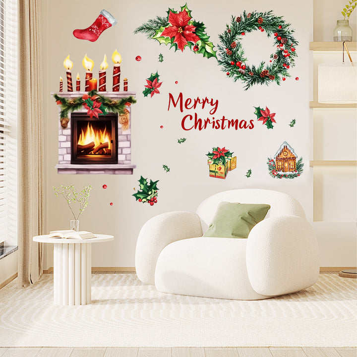Cross-border Christmas wall sticker fireplace wreath Christmas elements holiday party decoration sticker
