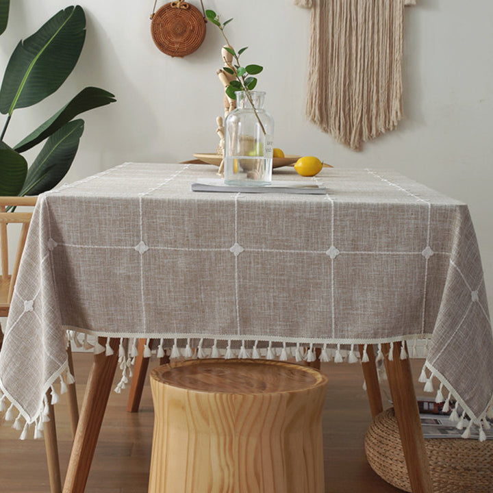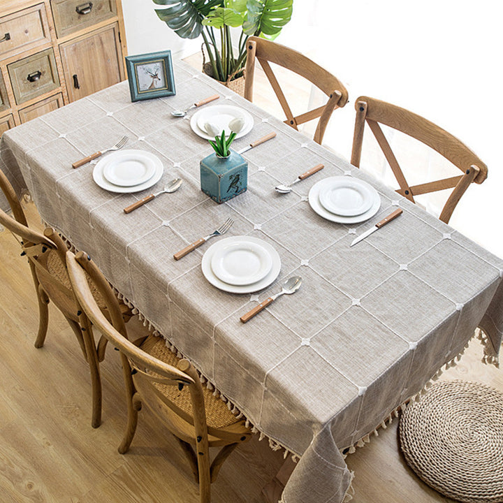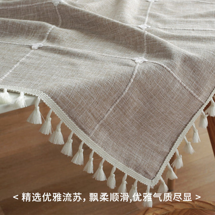Cross-border cotton and linen fabric large plaid dining table cloth rectangular coffee table table cloth fringed decorative cloth high-end textured...