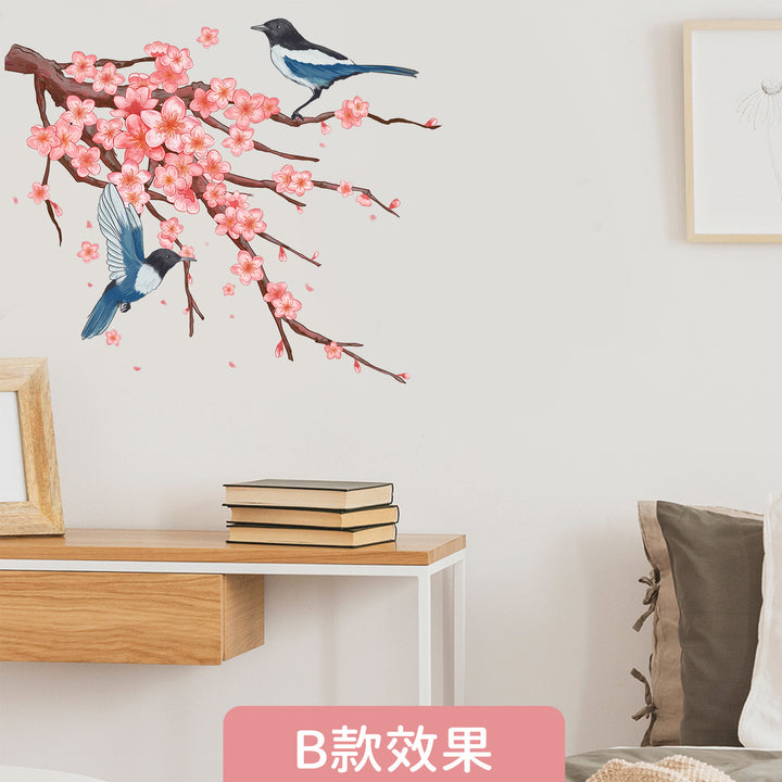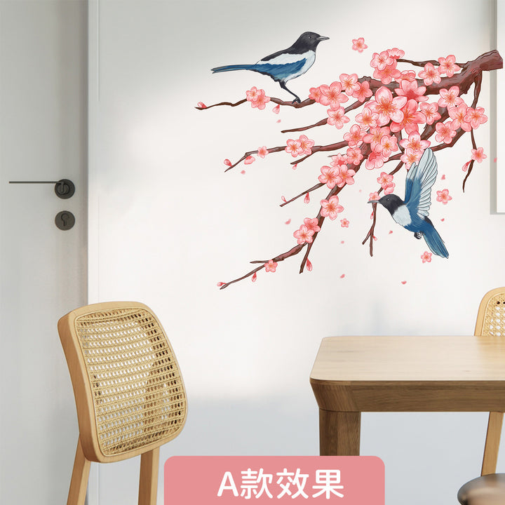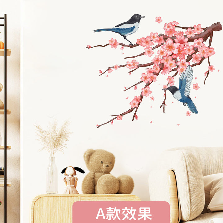 Cross-border creative plum blossom and bird wall sticker decoration room bedroom living room sticker self-adhesive painting wholesale