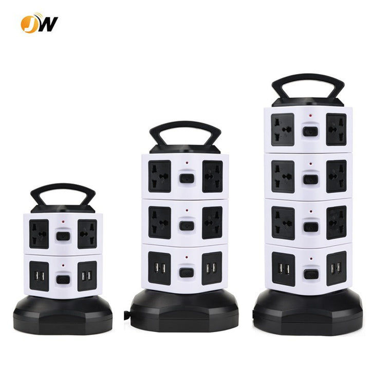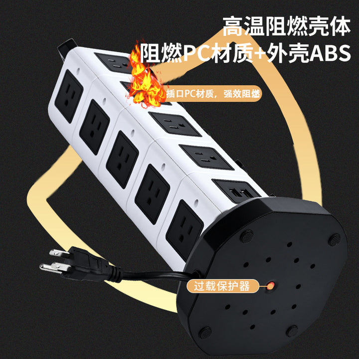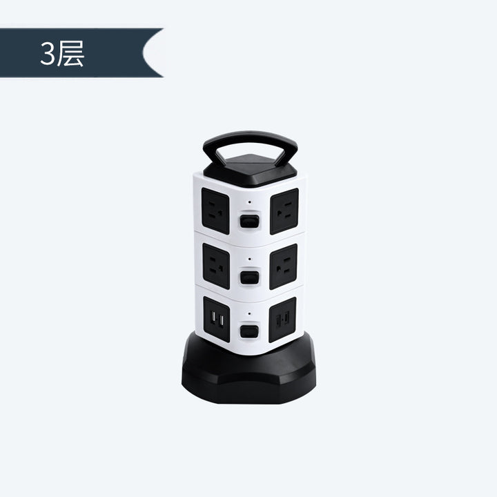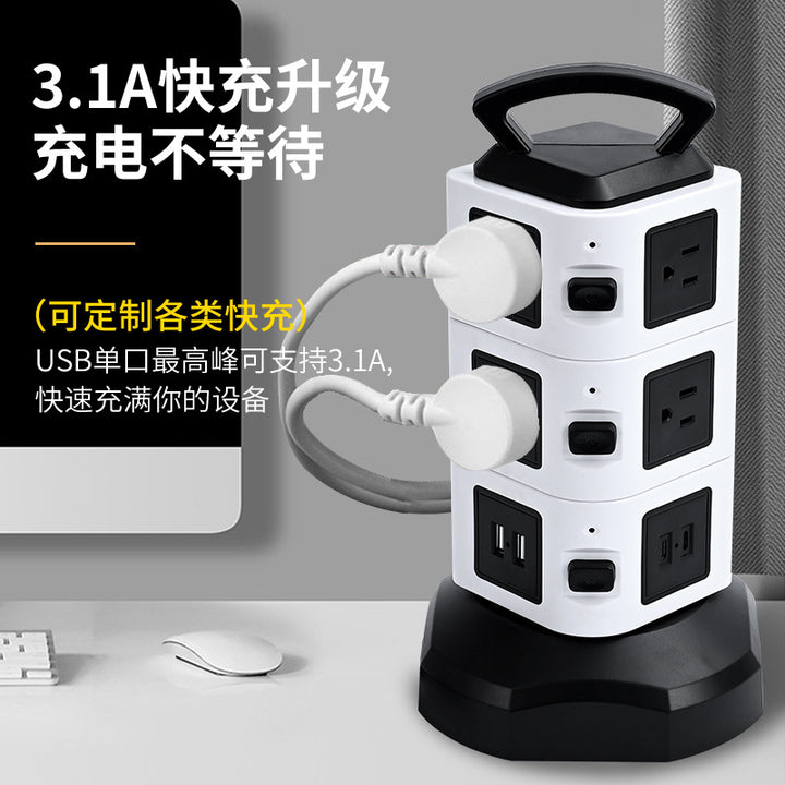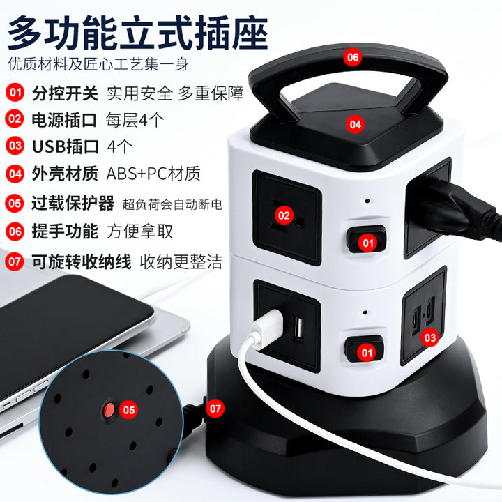 Cross-border custom vertical socket British standard multi-layer anti-overload USB power strip US standard take-up intelligent socket plug-in board