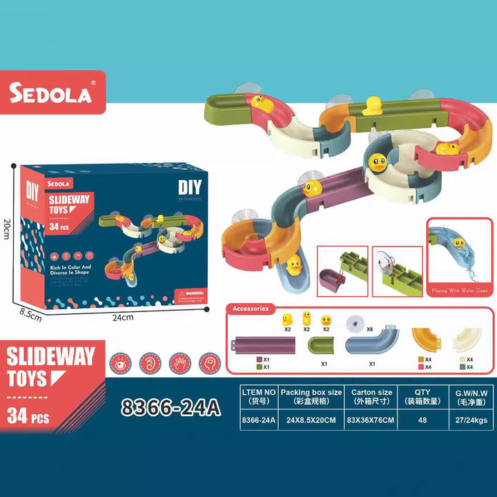 Cross-border DIY bathroom assembly track baby cute fun turning music playing water assembly ball track bath toy