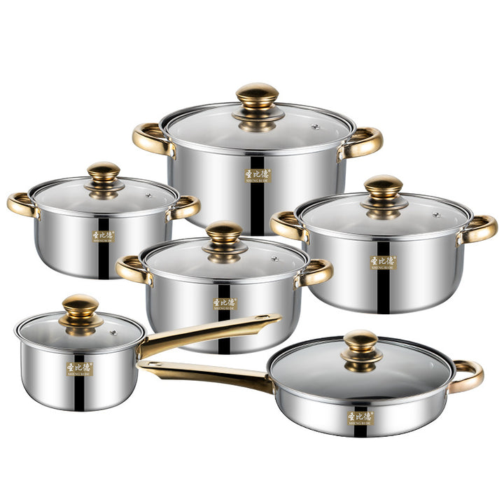 Cross-border e-commerce stainless steel 12-piece pot set golden handle kettle kitchen cooking pot cookware