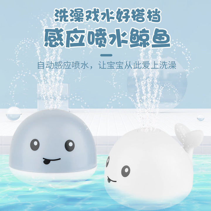 Cross-border electric induction water spray whale baby bathroom bath toy with light universa...