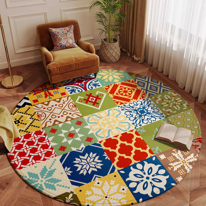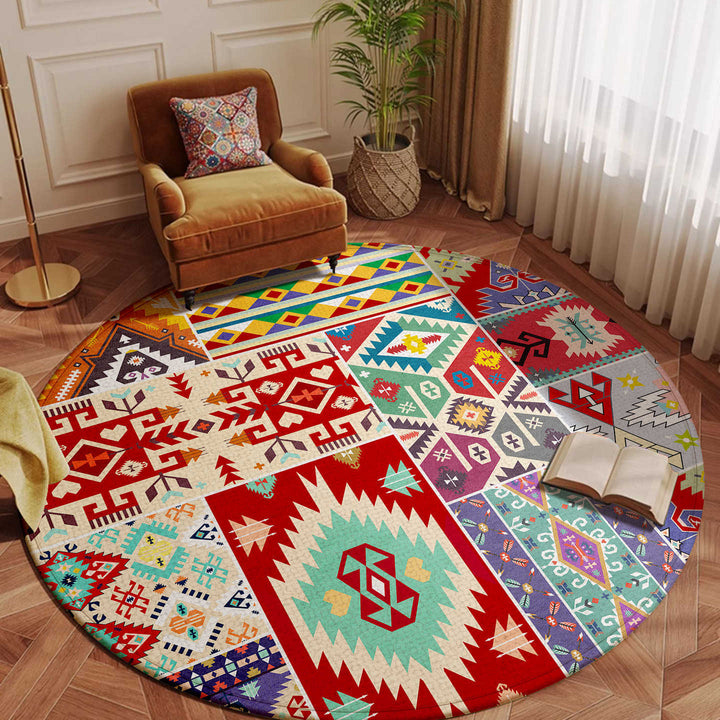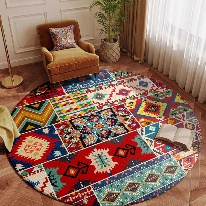 Cross-border ethnic style round living room carpet bedroom bedside foot blanket study mat Ame...