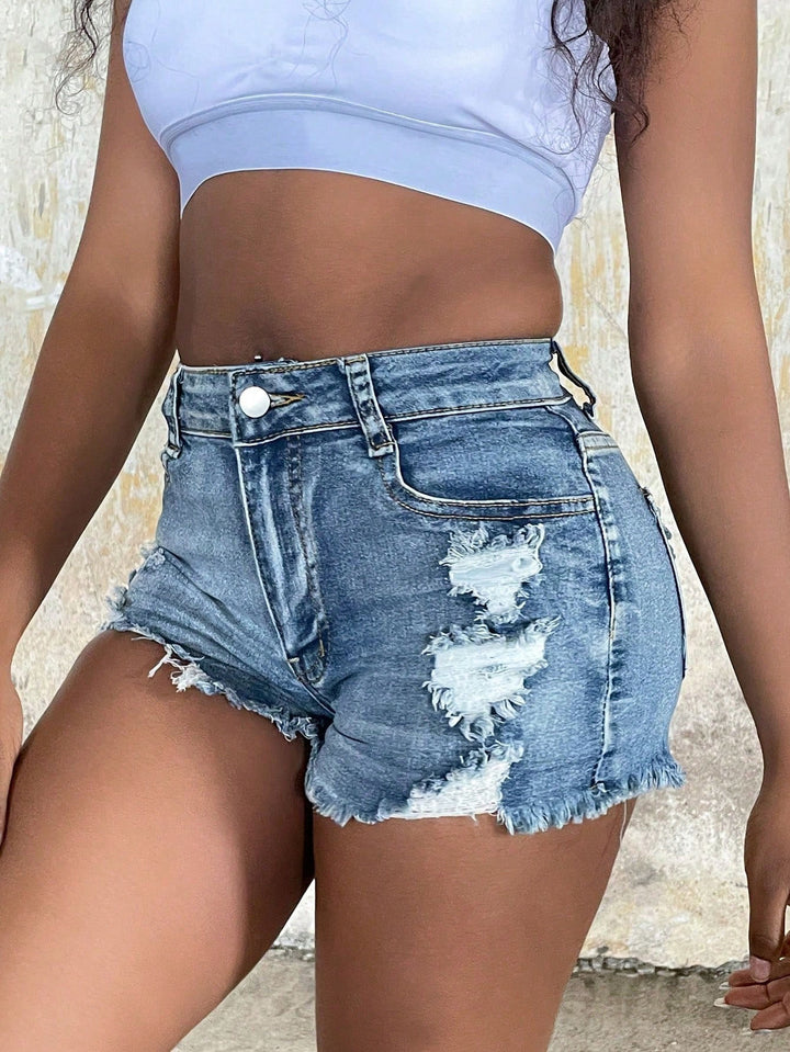 Cross-border Europe, America and 2025 summer new slim-fit ripped denim shorts personalized street rough edge hot pants women