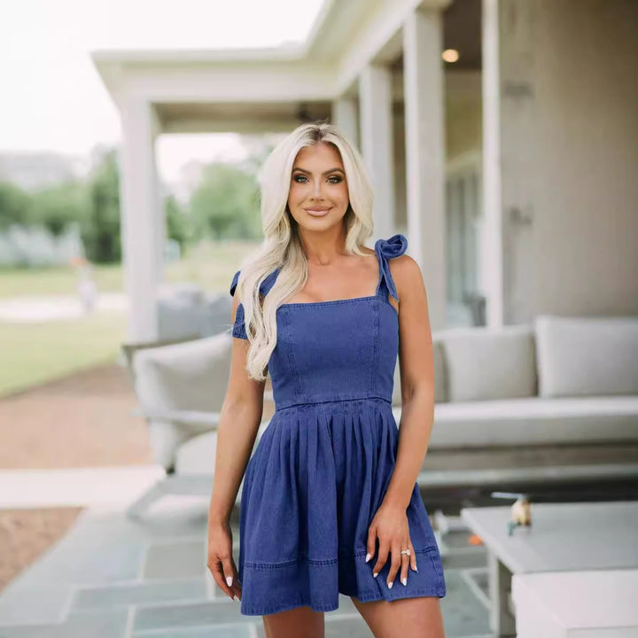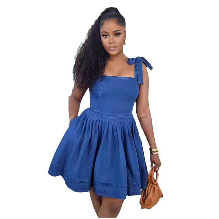 Cross-border European and American Express Summer New Fashion Sexy Suspender Waist Wash Denim Dress Short Skirt Wholesale