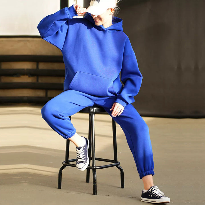 Cross-border European and American fashion suit long-sleeved hooded loose pocket sweater casual trousers two-piece set