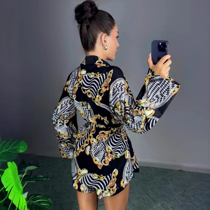 Cross-border European and American new women's clothing cardigan printed shirt women's casual shorts set fashion two-piece set