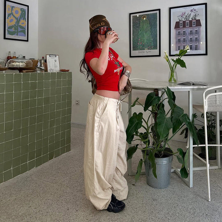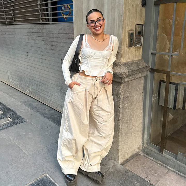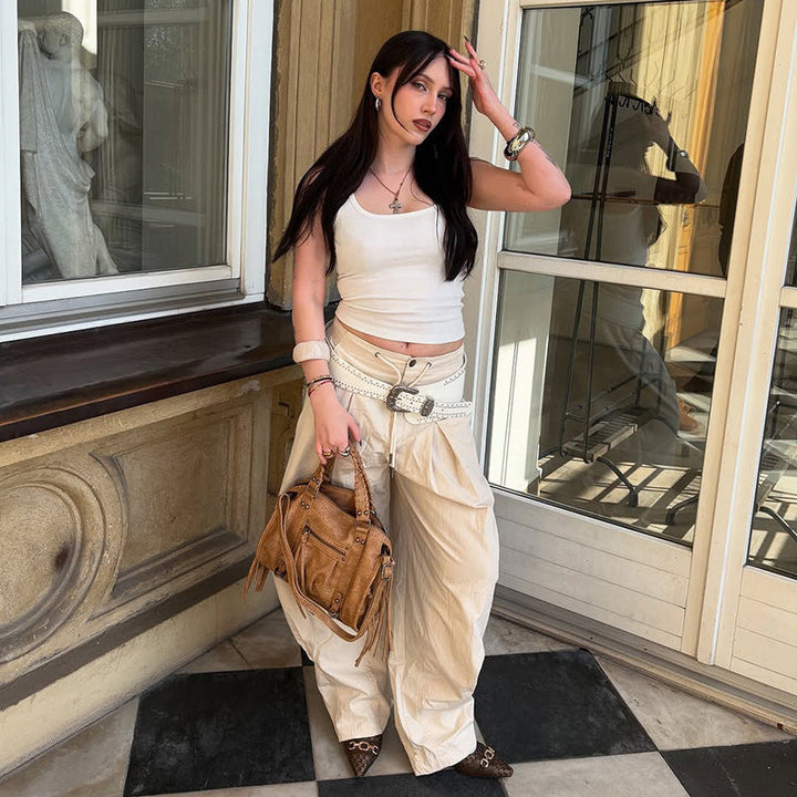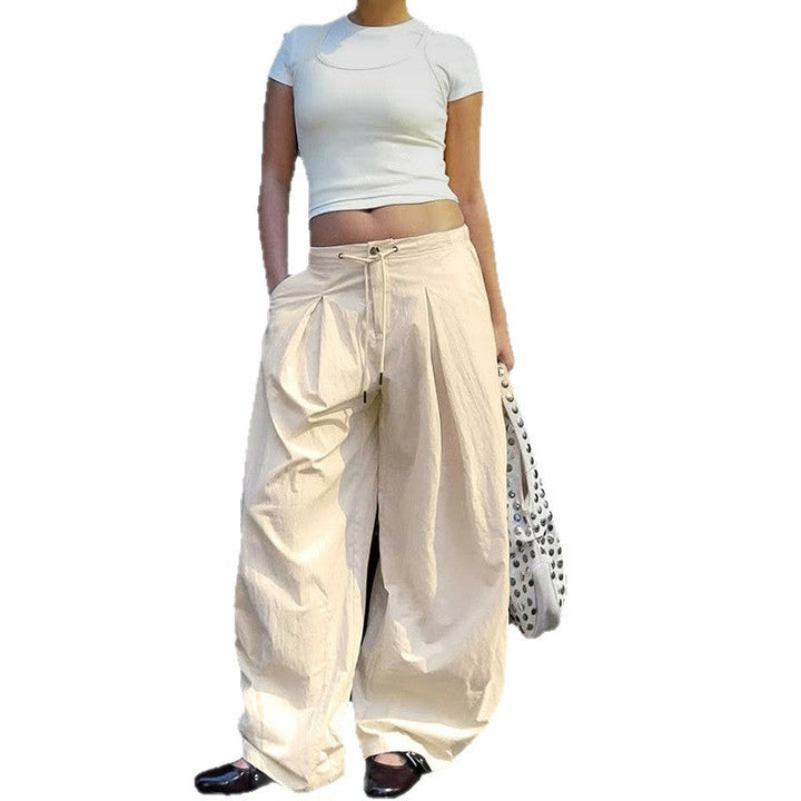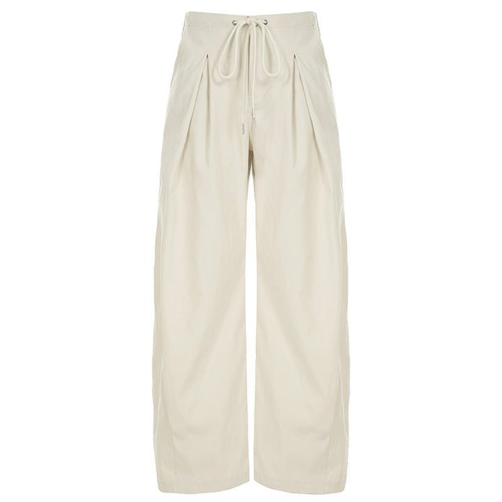 Cross-border European and American street style woven straps drawstring pants lazy wind wide-leg casual trousers pleated loose trousers