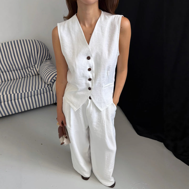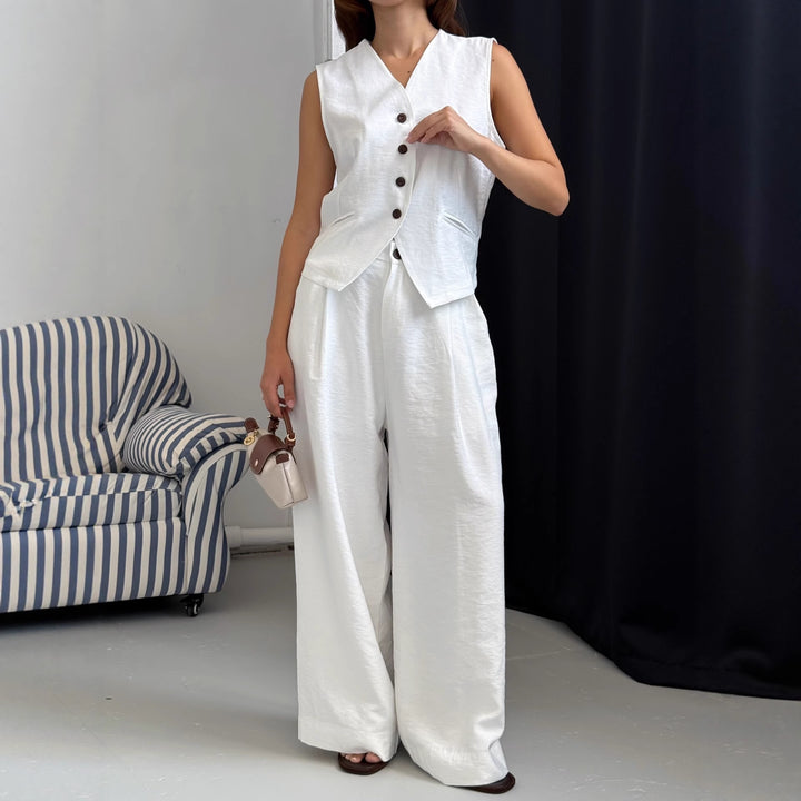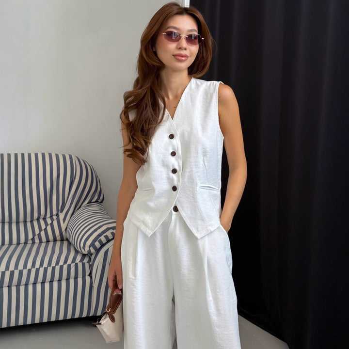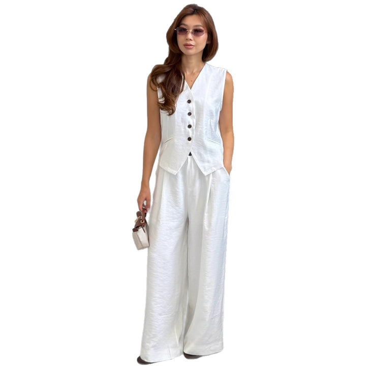 Cross-border European and American white vest suit sleeveless V-neck vest top temperament casual trousers women's suit