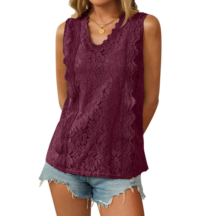 Cross-border European and American women's clothing 2023 summer new lace vest V-neck sleeveless top