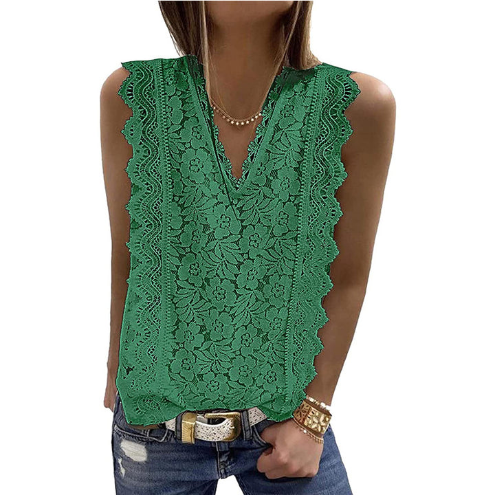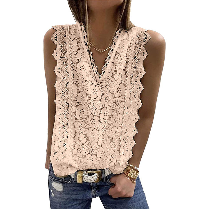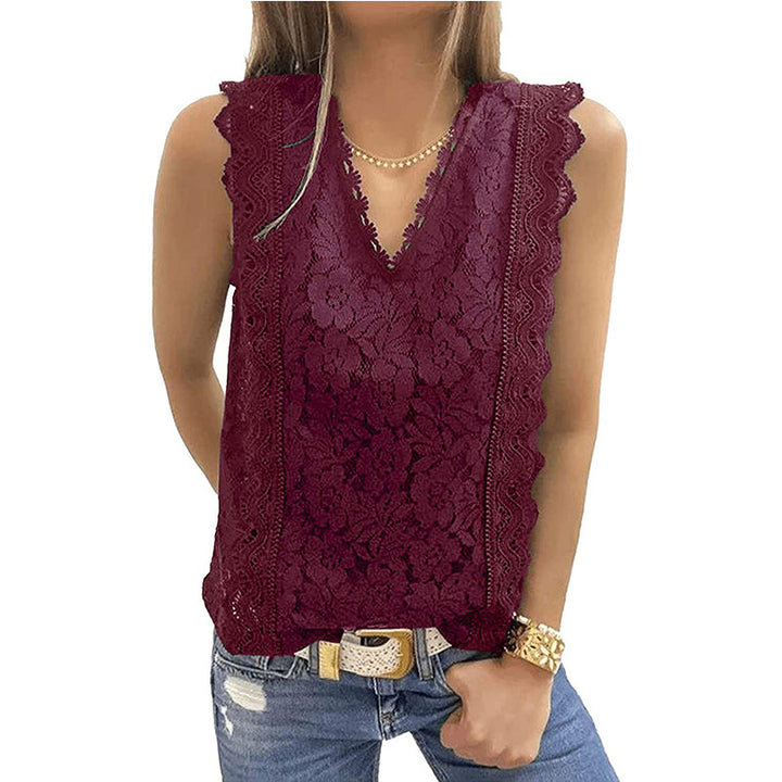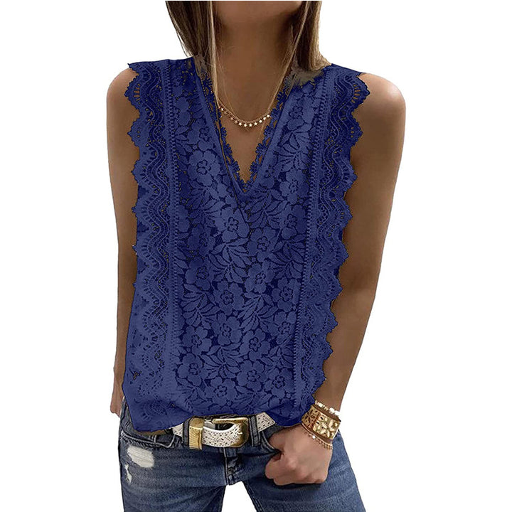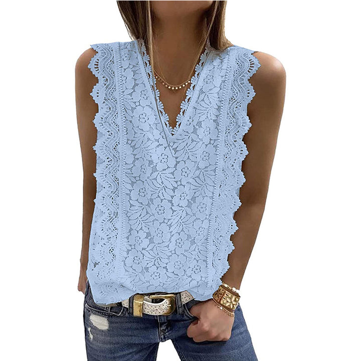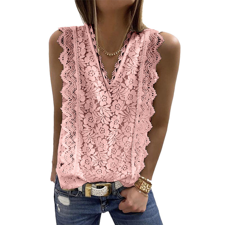Cross-border European and American women's clothing 2023 summer new lace vest V-neck sleeveless top