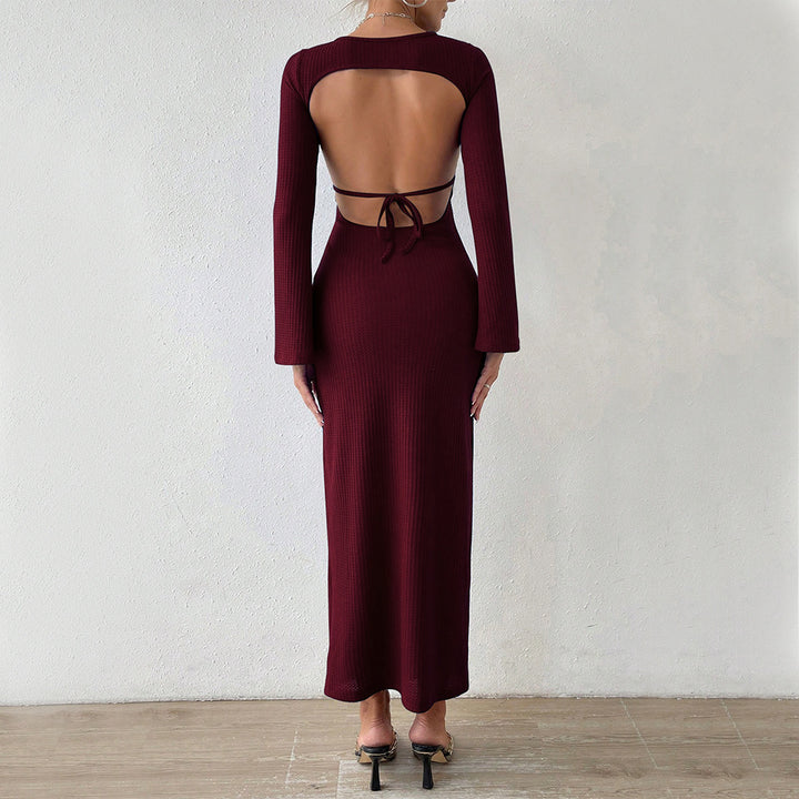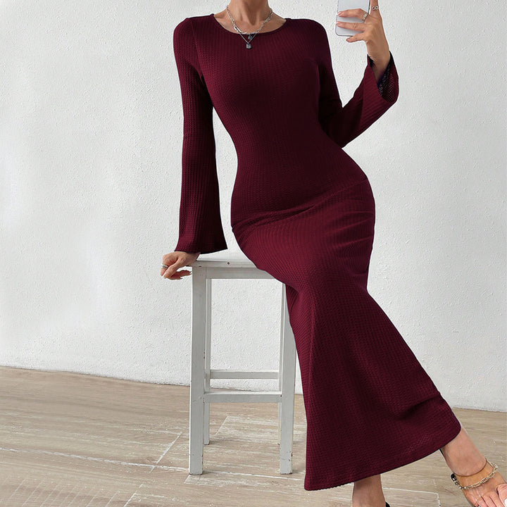 Cross-border European and American women's clothing 24 autumn and winter waist thin and drape buttocks fishtail long dress long sleeve sexy backles...