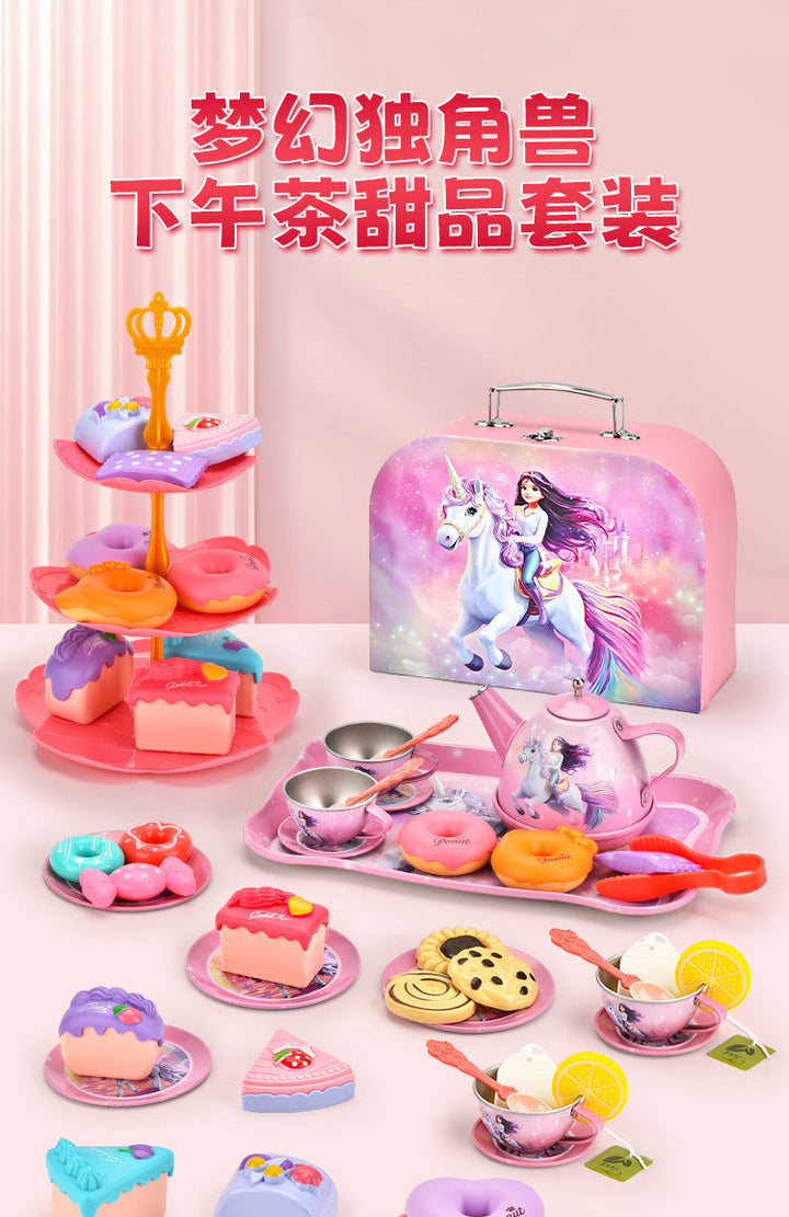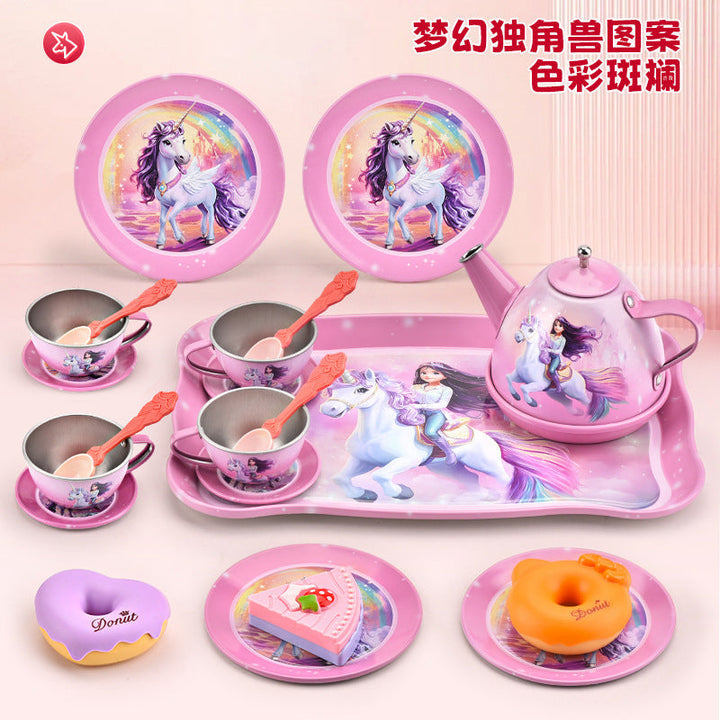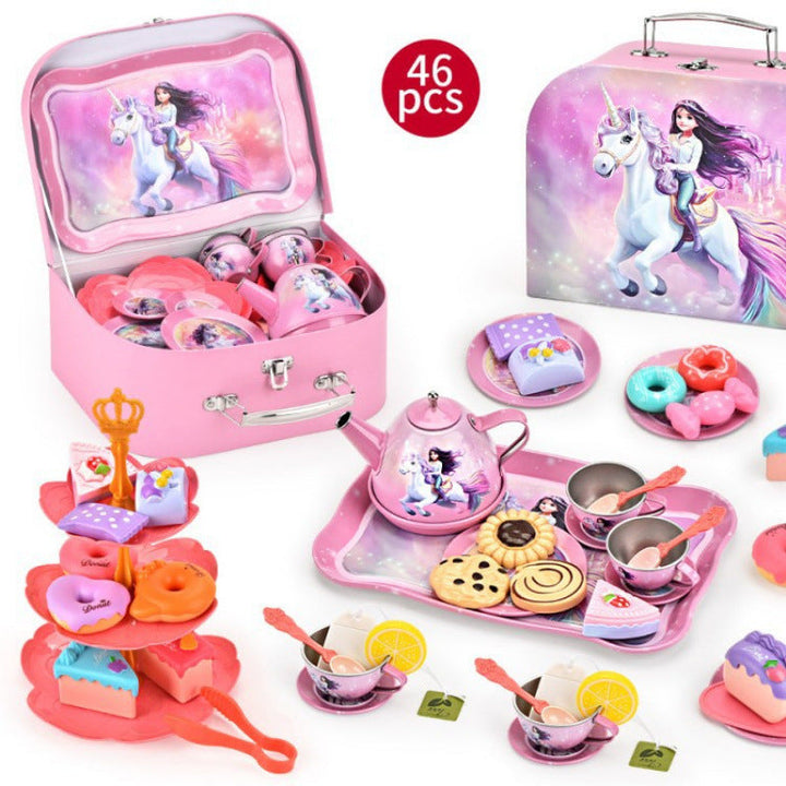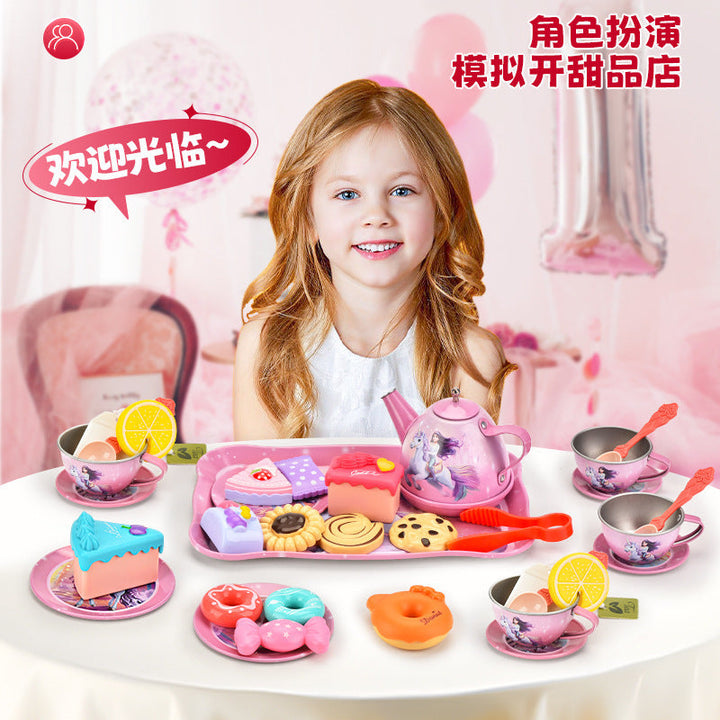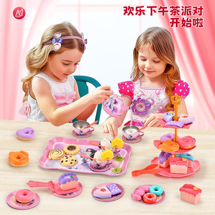 Cross-border export afternoon tea children play house simulation tinplate tea set toy afterno...