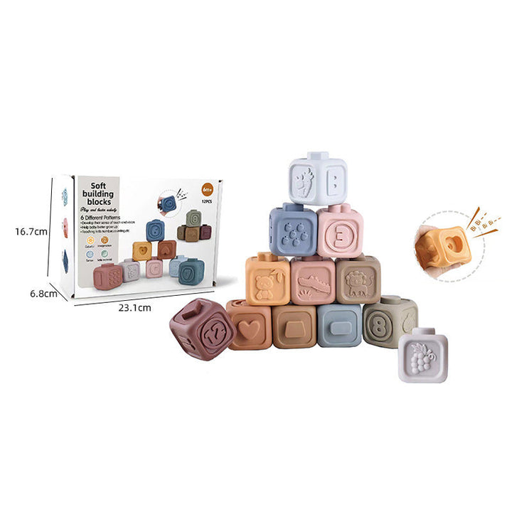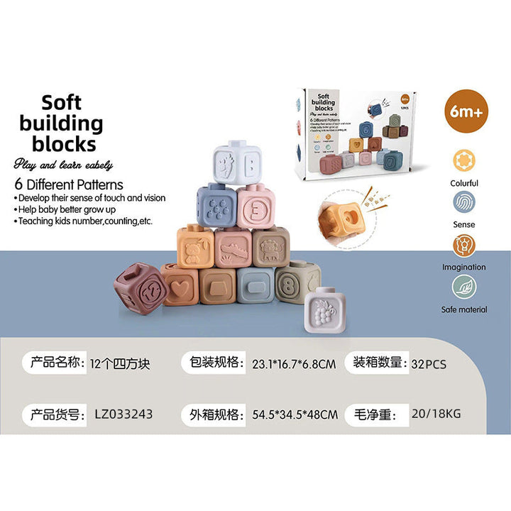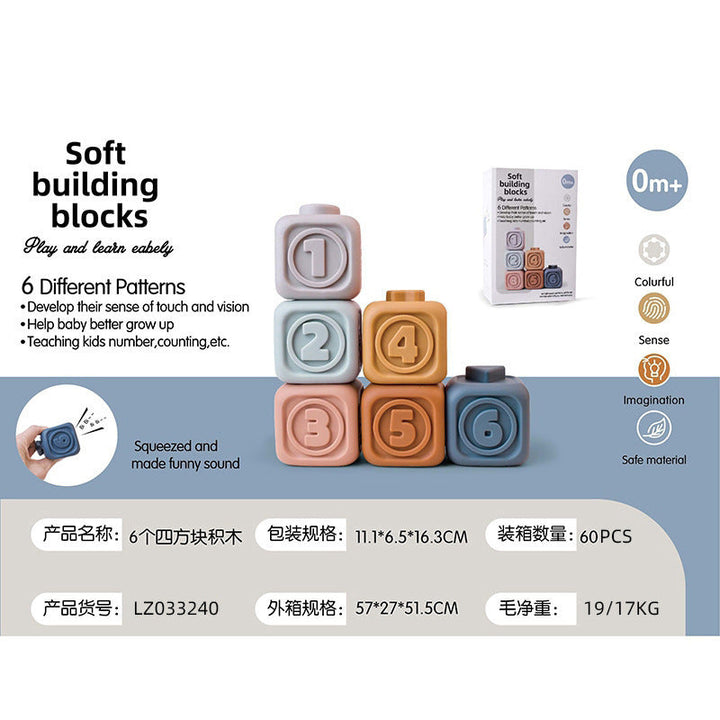 Cross-border export baby cognitive relief square soft rubber stacking Le baby vinyl soft rubber building block toy