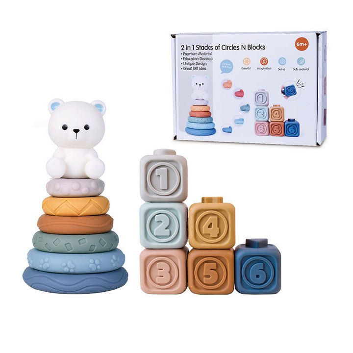 Cross-border export baby soft glue stacking music baby stacking tower square building block digital cognitive toy