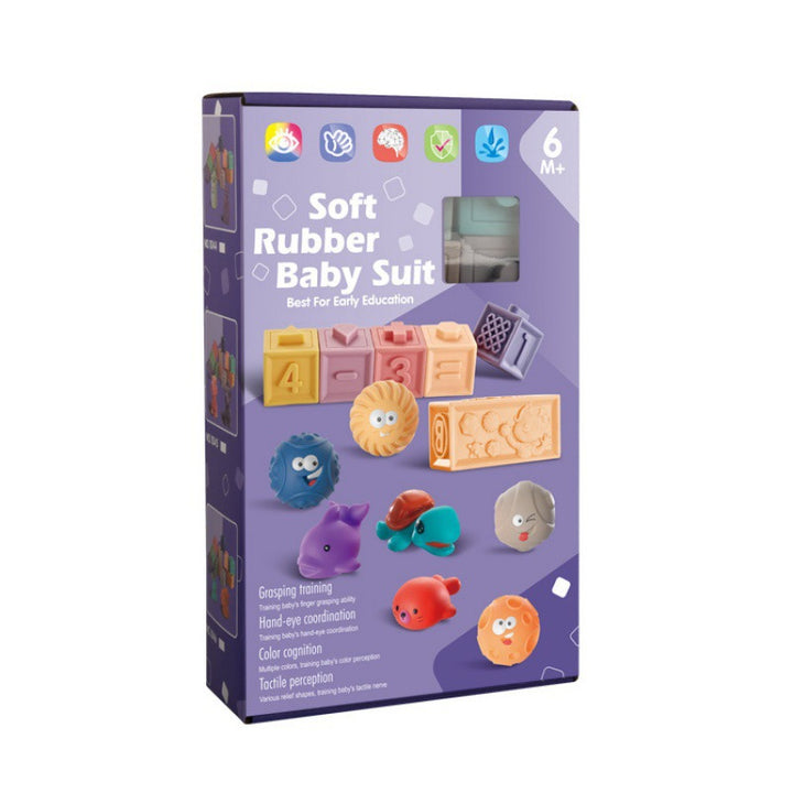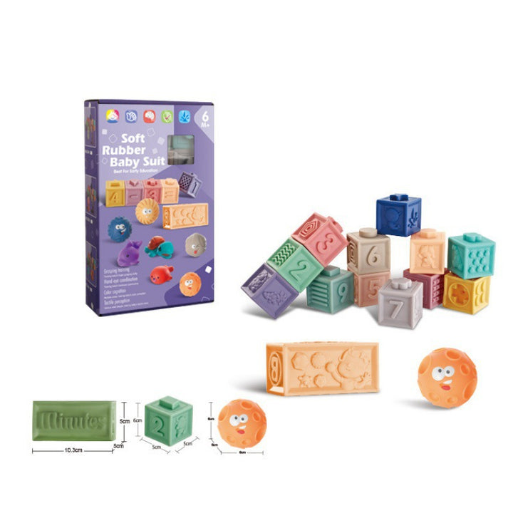 Cross-border export baby soft rubber building block educational toys animal digital building ...