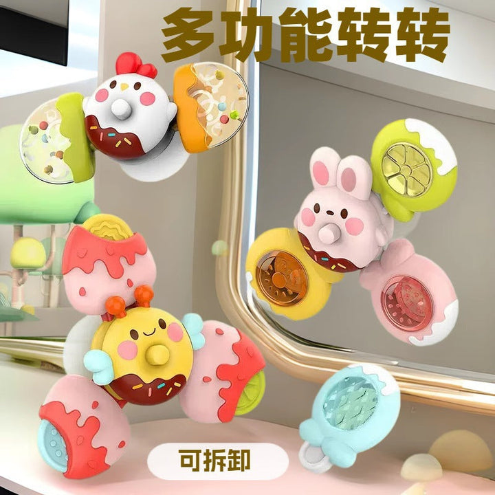 Cross-border export baby suction cup spinning music rattle grasp training dining table suction cup fingertip gyro toy