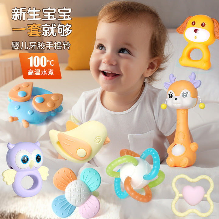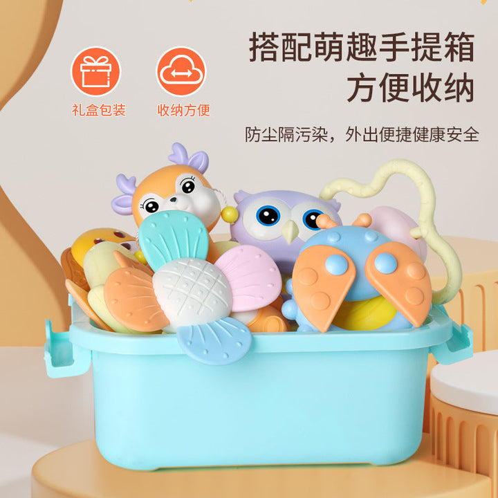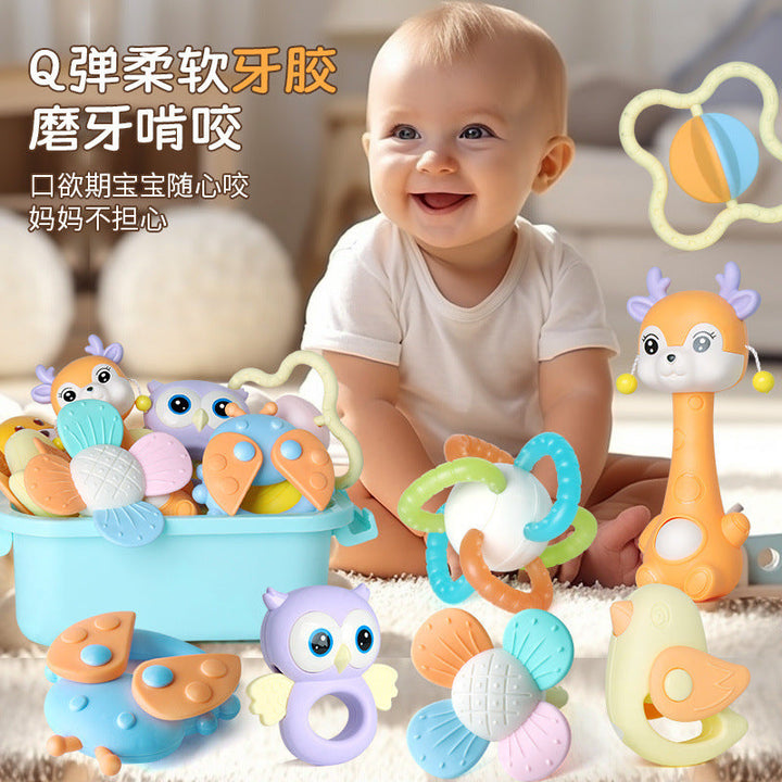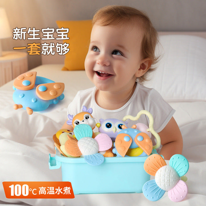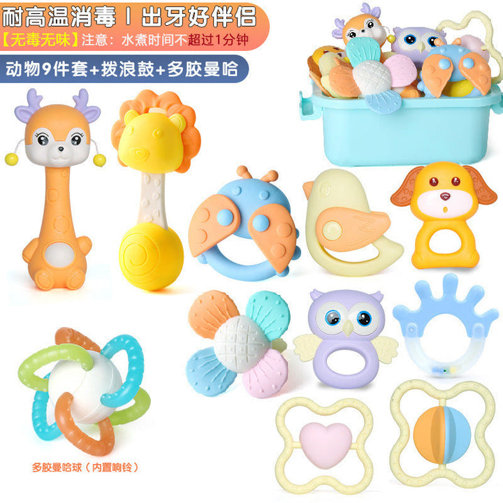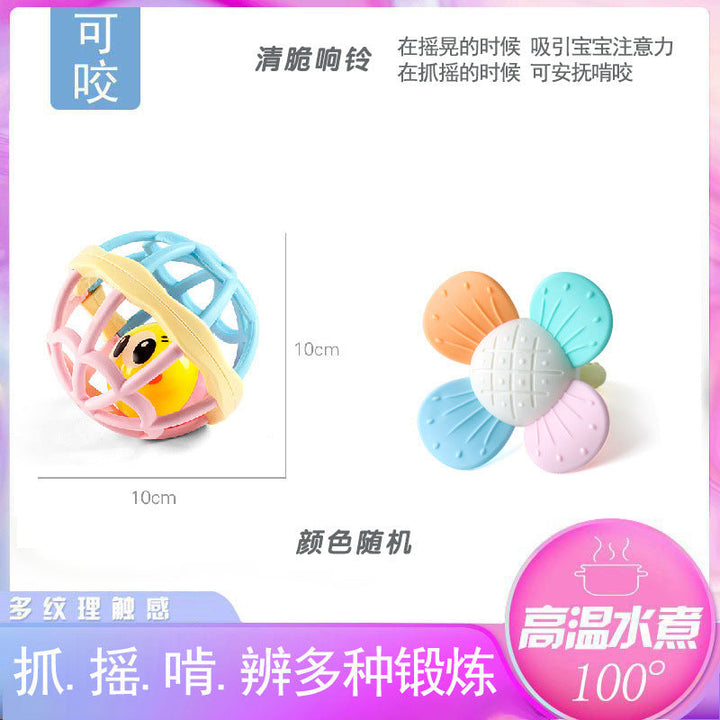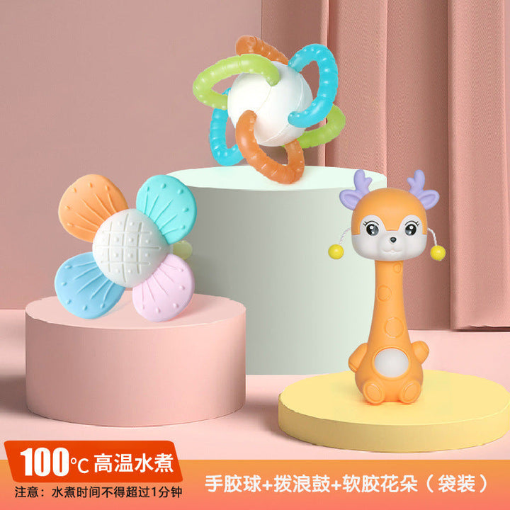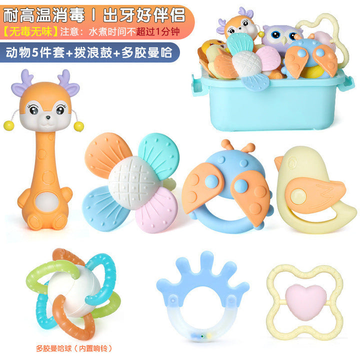 Deer Rattle + Handbell Ball [Grasp/Bite], Flower soft glue + handbell ball [gnaw/soothe], rattle + 5-piece set + hand glue ball + storage box, Deer rattle + flower + hand glue man ball [can be boiled], rattle + 9-piece set + hand glue ball + storage box, Double-headed rocker + handbell ball [can be boiled], Small flower [petals are soft glue] |
