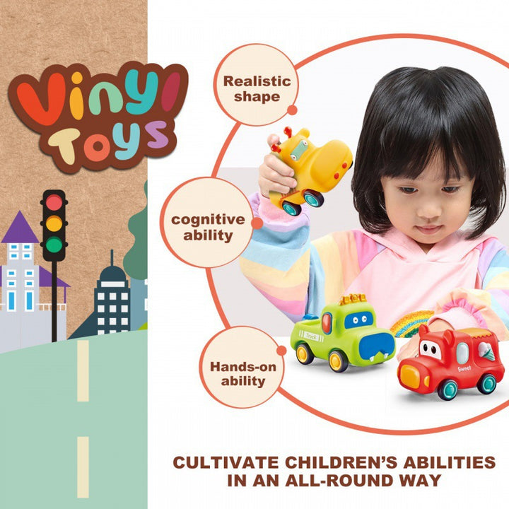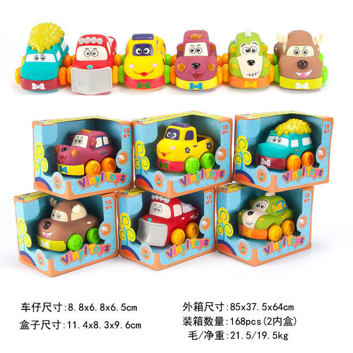 Cross-border export cartoon toys soft glue animals children inertia car baby q cute car toy car
