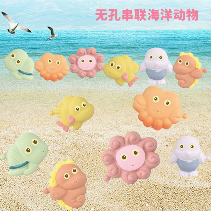 Cross-border export children's bathroom soft glue animal water toys baby bath straw material...