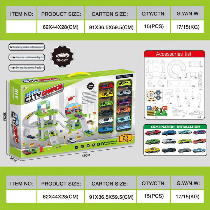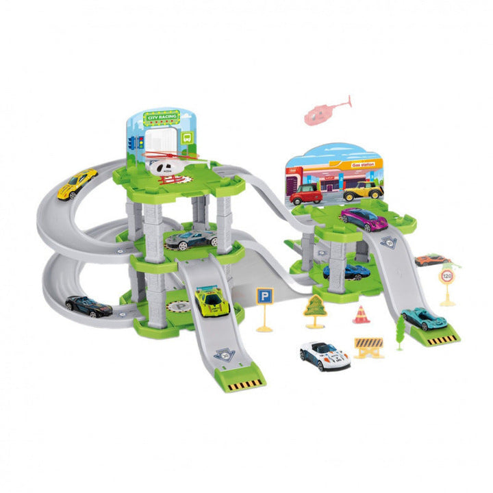 Cross-border export children's DIY assembly multi-layer urban rail alloy car parking lot play...