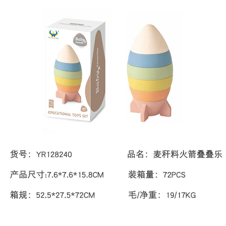 Cross-border export children's soft rubber building block early education perception enlightenment straw material rocket stacking music toys