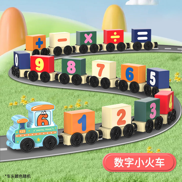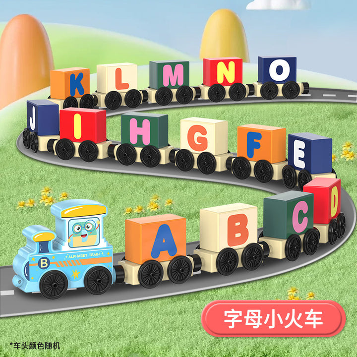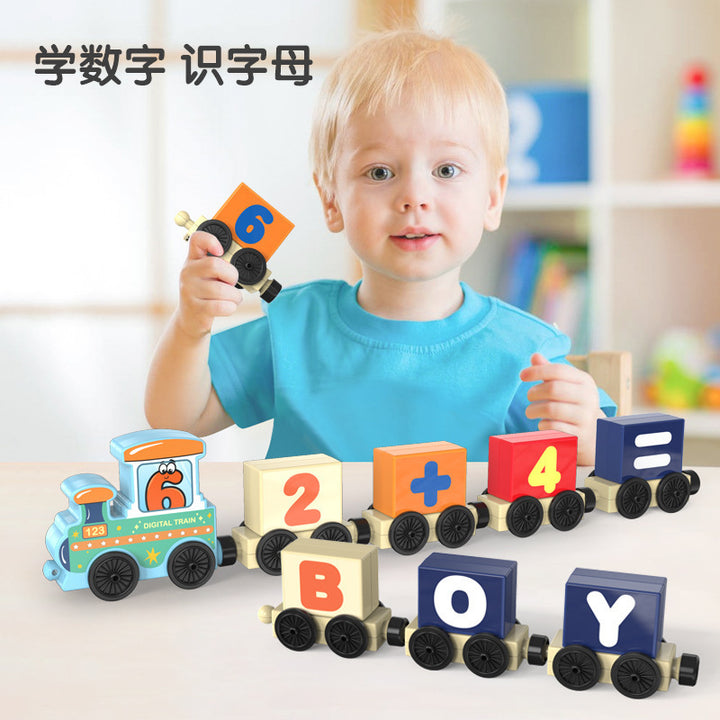 Cross-border export magnetic digital train toy children's cognitive magnetic assembly letter drag building block