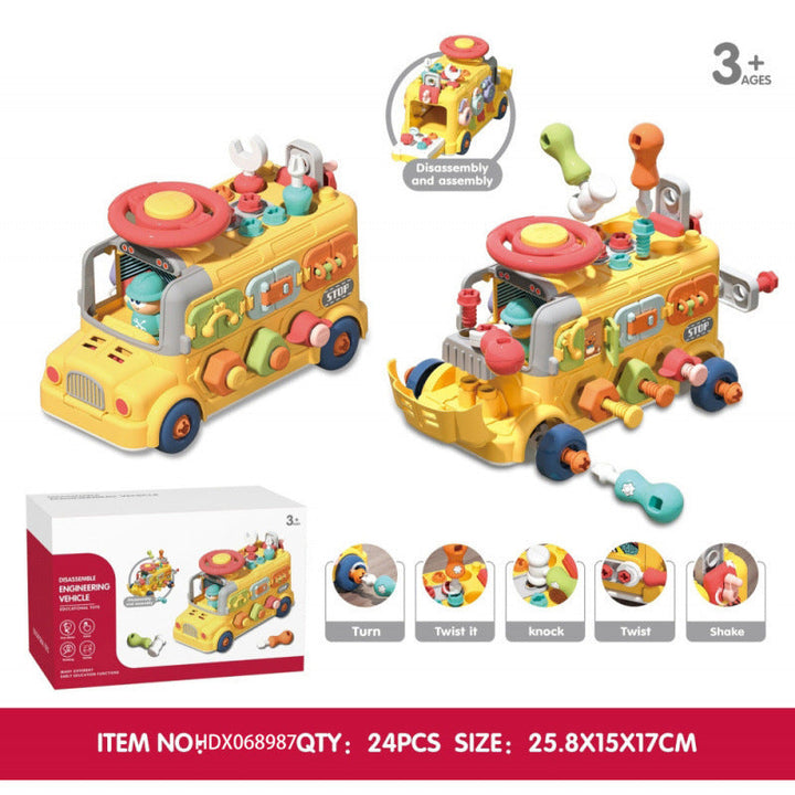 Cross-border export of children's educational engineering vehicle toys, infant early education removable multi-functional bus disassembly tools