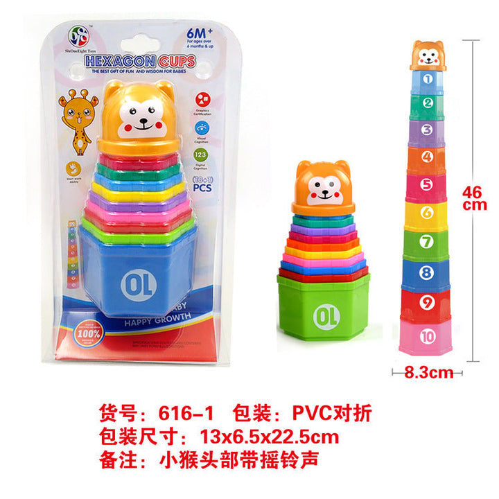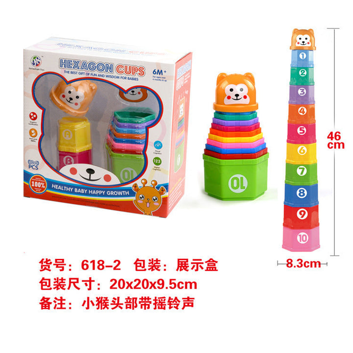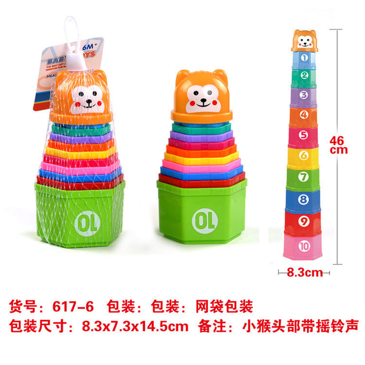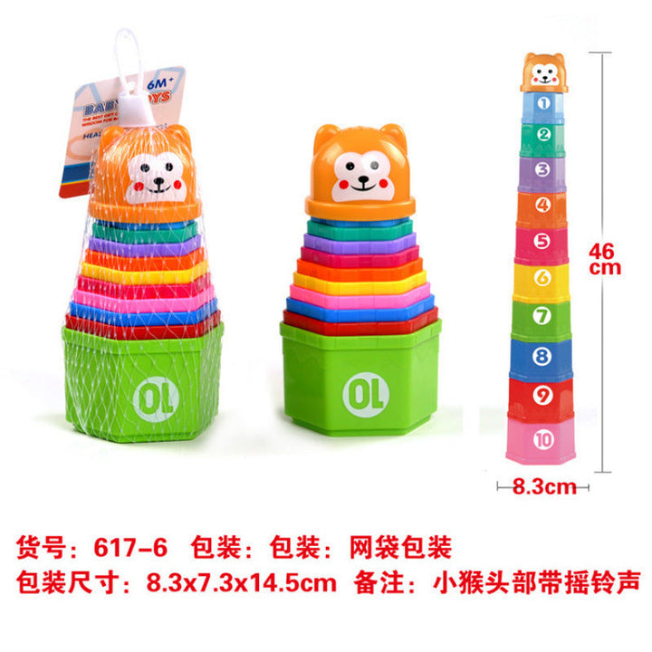 Cross-border export of Russian infant and early childhood education toys, monkey head with rattle, educational stacking cup/stacking music