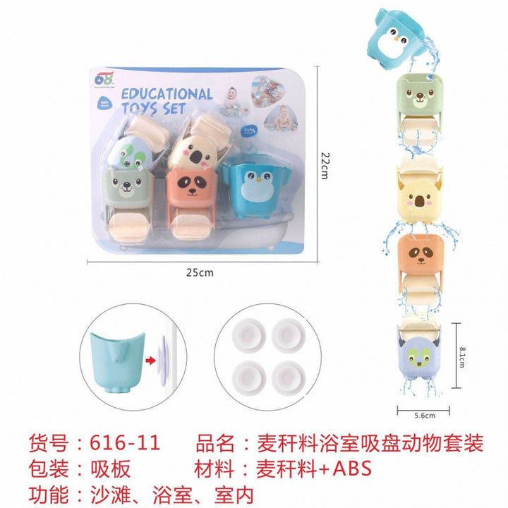 Cross-border export South East Asia Children's early education Toddler enlightenment Straw material Bathroom suction cup Animal set Water toy