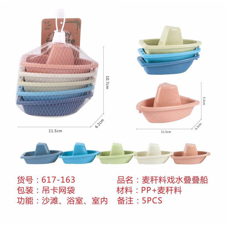 Cross-border Export South East Asia Children's Early Education Toddler Enlightenment Straw Material Water Stacking Boat Bathroom Water Toys