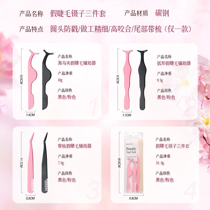 黑色直身睫毛夹, 粉色直身睫毛夹, 黑色带梳弯头夹, 粉色带梳弯头夹, 黑色海马夹假睫毛夹, 粉色海马夹假睫毛夹, 黑色睫毛辅助器三件套, 粉色睫毛辅助器三件套 |